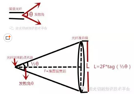 從能量光纖出來的光,是一個點光源,是有發(fā)散角(θ)的,這個參數(shù)一般可以查到的。如果我們把這個點光源放置于光纖準直鏡的焦點上,我們知道:從一個聚焦鏡(準直鏡其實際上把聚焦鏡反過來用)的焦點上發(fā)出的光,經過聚焦鏡之后就變成了平行光。很多人問我經過某個準直鏡之后出來的光束直徑是多大,今天我在這里給大家答案,就是2F*tag(?θ),如發(fā)散角是10°,F(xiàn)=150mm,那么從準直鏡出來的光束直徑就=2*150*tag(5°)=26.2466mm。這個公式對于使用光纖傳輸?shù)恼耒R是焊接機選擇振鏡是有參考意義的。繼續(xù)往下講就是光纖切割機行業(yè)人士想了解的東西了。經過光纖準直鏡之后,激光進入光纖切割機的聚焦鏡,按照理論來說,準直鏡焦距÷聚焦鏡焦距=聚焦后能量密度相對于之前的密度比,如:準直鏡焦距是75mm,聚焦鏡焦距是150mm,75÷150=?,就是說經過聚焦鏡之后聚焦光斑的面積相比于從剛從能量光纖出來的點光源的面積大一倍,能量密度是原來的?。有人問,為什么要能量密度降低干啥啊,能量密度集中不是更好嗎?這里有幾個原因,第一:如果聚焦鏡的焦距越短,聚焦鏡的焦深就越淺,焦深淺就容易導致切不深。第二: