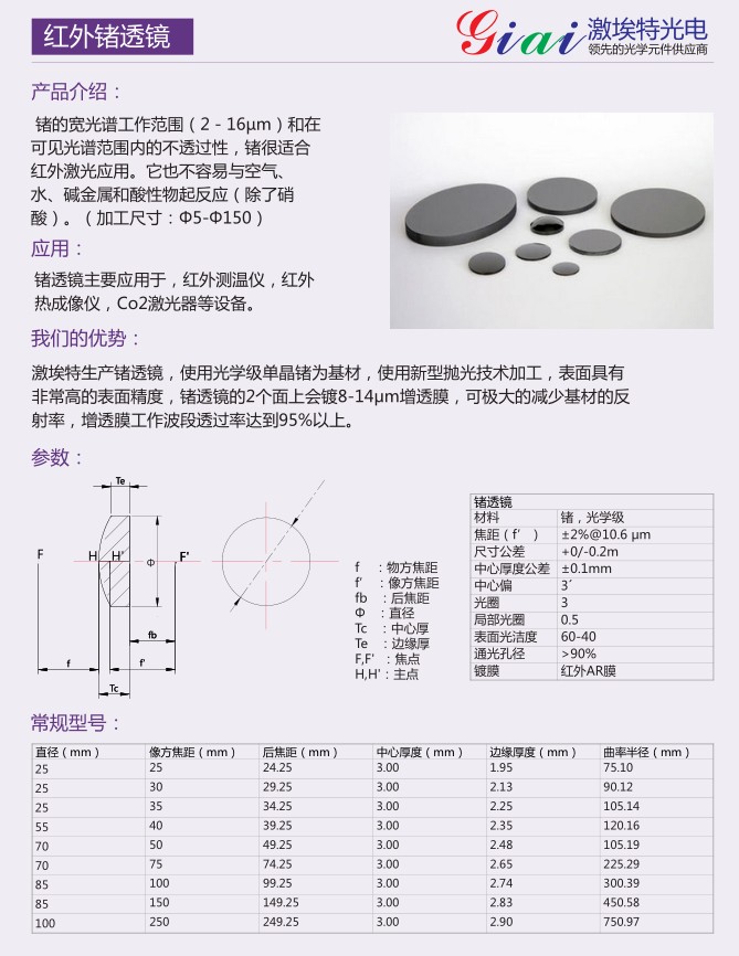 產(chǎn)品批量應(yīng)用:各種鏡頭,CO2激光打標,激光切割,激光焊接,紅外熱成像,光電傳感器封裝,以及生物識別系