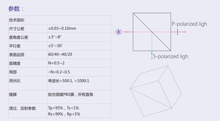 偏振分光棱鏡 Written by Giai// 九月 20, 2016// 光學(xué)棱鏡系列// 產(chǎn)品介紹: 偏振分光棱鏡能把入射的非偏振光分成兩束垂直的線偏光。其中P偏光完全通過,而S偏光 以45度角被反射,出射方向與P光成90度角。此偏振分光棱鏡由一對(duì)高精度直角棱鏡膠合而 成,其中一個(gè)棱鏡的斜邊上鍍有偏振分光介質(zhì)膜。 Related Posts 膠合棱鏡 膠合棱鏡 轉(zhuǎn)向棱鏡 轉(zhuǎn)向棱鏡