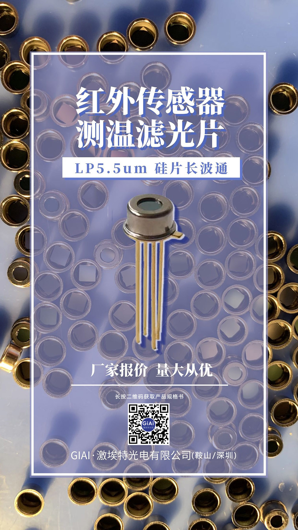 “鞍山激埃特光電”提供紅外濾光片+TO管帽,成立濾光片切割和點(diǎn)膠封裝的生產(chǎn)線。 額溫槍熱電堆傳感器用, TO4