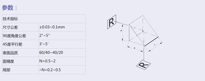徑或使光束發(fā)生色散,由透明材料如玻璃、水晶等制成。直角棱鏡是直角三棱柱,即上下面都