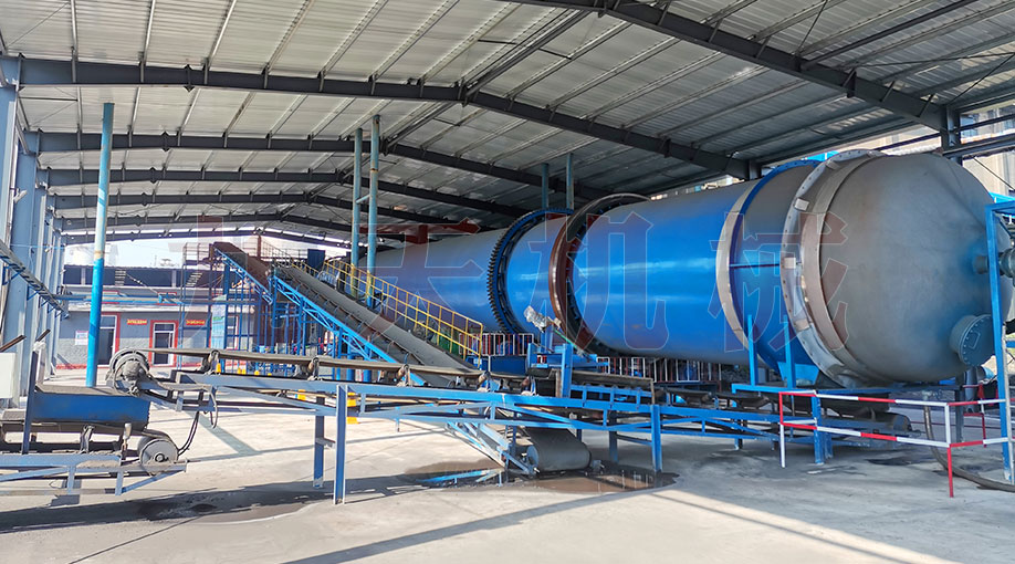 待干燥的物料首先由一臺裝載機(jī)端入原物料料倉,再經(jīng)過計量稱、鏈板輸送機(jī)輸送至斗式提升機(jī),再進(jìn)入滾筒前段下料下料溜槽。并被入滾筒干燥機(jī)后經(jīng)大傾角導(dǎo)料板將其迅速導(dǎo)向傾斜揚料區(qū),并隨滾筒的轉(zhuǎn)動和筒體的傾斜度,被自筒底提至筒頂落下,形成“料幕”,濕基物料物料與列管換熱器形成傳導(dǎo)和對流質(zhì)熱交換,直至達(dá)到熱平衡后達(dá)到對物料的水分要求后,物料被排出干燥滾筒。經(jīng)過熱交換之后含有大量水蒸氣及粉塵的尾氣經(jīng)過旋風(fēng)除塵器,被去除掉大部分粉塵后進(jìn)入袋式脈沖除塵器進(jìn)行除塵,凈化后的尾氣直接排放,完成整個干燥過程。