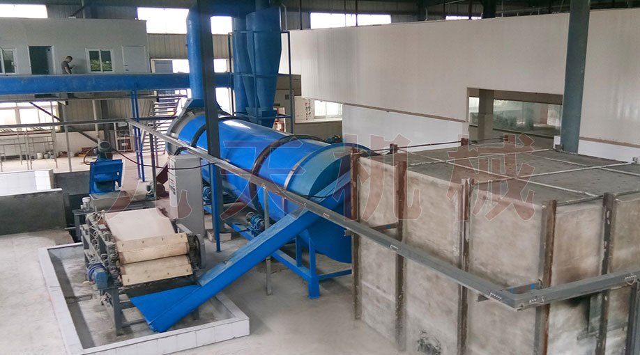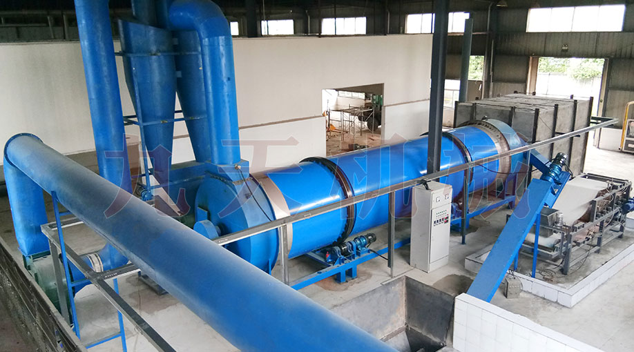 采用三層打散式滾筒烘干機(jī)進(jìn)行干燥脫水,高濕豆渣由螺旋輸送機(jī)送入滾筒內(nèi),在抄板下不斷抄起、散落呈螺旋行進(jìn)式前進(jìn),內(nèi)置攪拌槳葉裝置將物料充分?jǐn)嚢璐蛏⑵扑椋浞謹(jǐn)U大物料與熱氣熱交換面積,這樣就解決了黏壁現(xiàn)場(chǎng),同時(shí),滾筒烘干機(jī)內(nèi)部設(shè)置有震打清理裝置,防止物料與筒壁粘接而料幕均勻,受熱面積大,通過(guò)率高,很大程度上避免了糊料的發(fā)生。
