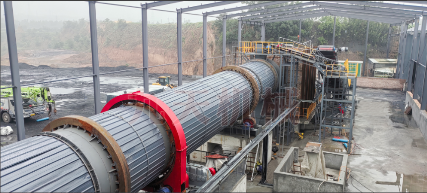 鄭州九天發(fā)往山西運(yùn)城的煤泥烘干生產(chǎn)線,是一套高效協(xié)同的設(shè)備系統(tǒng)。當(dāng)濕煤泥進(jìn)入生產(chǎn)線,螺旋推進(jìn)式進(jìn)料口迅速啟動(dòng),變徑螺桿精準(zhǔn)控制進(jìn)料量,將煤泥均勻送入滾筒。此時(shí),打散裝置同步運(yùn)轉(zhuǎn),高速旋轉(zhuǎn)的葉片將結(jié)塊煤泥破碎,為后續(xù)烘干奠定基礎(chǔ)。